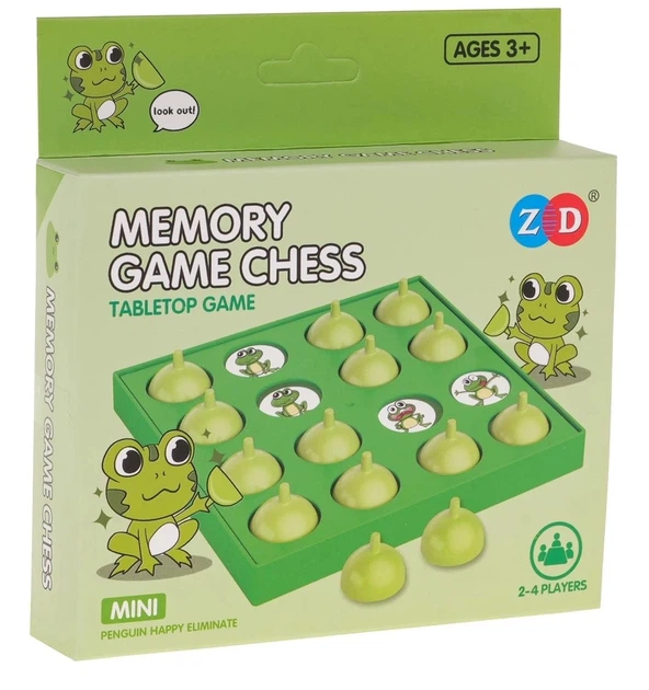 Логічна сімейна гра «Пам’ять» для дітей віком від 3 років та дорослих. Набір складається з дворівневої дошки з отворами у формі кіл та карток із малюнками жаб у різних позах. Картка з малюнками кладеться між дошками, а отвори закриваються конусами. Гравці повинні запам’ятати, в якій клітинці знаходиться дана жаба. Гравці беруть заданий конус і намагаються знайти ідентичний малюнок. Перемагає гравець, який знайде найбільше пар. Гра вчить терпінню, розвиває пам’ять та концентрацію.
