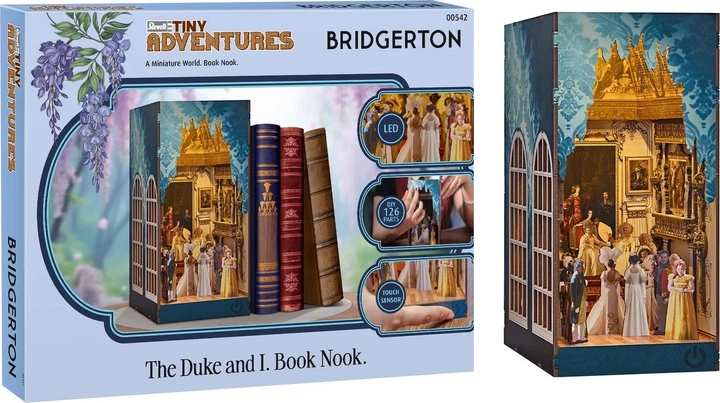 Книжковий куточок «Бріджертон: Герцог і я» – мініатюрний світ, який можна зібрати самостійноПогляньте на полицю. І ви посеред світу Бріджертона. Цей книжковий куточок зображує сцени з фільму «Герцог і я» – у вигляді тривимірної мініатюри, яку ви можете зібрати самостійно. Точні дерев'яні компоненти, сенсорний датчик, світлодіодне підсвічування. Працює без попередніх знань. Поміщається між вашими книгами.