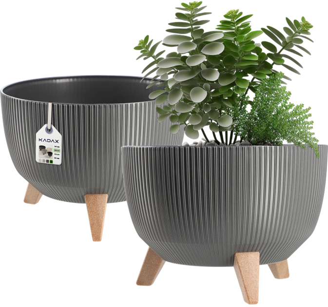 Квітковий горщик на ніжках Kadax Milis K4286 — це легке та міцне кашпо овальної форми, виготовлене з високоякісного пластику, стійкого до вологи, ультрафіолету, морозу, хімічних речовин і перепадів температур, що робить його придатним для використання як у приміщенні, так і на вулиці. Графітовий колір додає сучасного вигляду, а ніжки забезпечують стабільність і покращену циркуляцію повітря під горщиком. У комплект входить нижня вставка, яка відводить зайву воду та підтримує здоровий розвиток коренів, а гладка поверхня легко очищується та зберігає естетичний вигляд. Завдяки стійкості до пошкоджень і екологічності цей горщик є практичним, функціональним і довговічним рішенням для квітів і декоративних рослин, доповненим офіційною гарантією 2 роки.