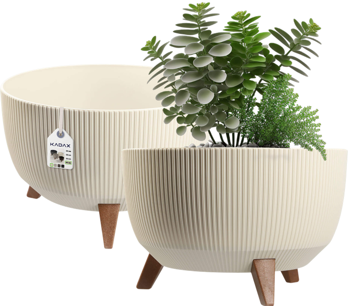 Квітковий горщик на ніжках Kadax Milis K4295 — це міцне та містке кашпо овальної форми, виготовлене з високоякісного пластику, стійкого до вологи, ультрафіолету, морозу, хімічних речовин і перепадів температур, що робить його придатним для використання як у приміщенні, так і на вулиці. Кремовий колір додає йому елегантності, а ніжки забезпечують стабільність і покращену циркуляцію повітря під горщиком. Великий діаметр отвору 39.5 см дозволяє висаджувати навіть крупні декоративні рослини, а нижня вставка ефективно відводить зайву воду та підтримує здоровий розвиток коренів. Кашпо легко чиститься, стійке до пошкоджень і є екологічним продуктом, що гарантує довговічність і практичність у щоденному використанні. Завдяки поєднанню функціональності, гігієнічності та стильного дизайну воно стане чудовою прикрасою будь-якого інтер’єру чи садового простору.
