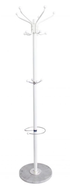 Вішалка-стійка з 14 гачками для підвішування одягу та підставкою для парасольок.Стабільна металева конструкція та велика мармурова основа впишуться в будь-який інтер'єр. Додатковими перевагами вішалки є поворотна верхня частина та менші гачки, що підходять для дітей.