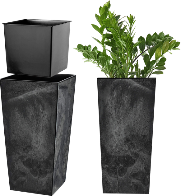 Квітковий горщик Kadax Pesaro K9932 — це стильне квадратне кашпо чорного кольору, яке поєднує сучасний дизайн, практичність і високу стійкість до зовнішніх впливів. Воно виготовлене з якісного пластику, що не боїться вологи, ультрафіолету, морозу та різких перепадів температур, тому підходить як для використання в приміщенні, так і на вулиці. Завдяки знімній вставці догляд за рослинами стає значно простішим, а сама конструкція забезпечує зручність пересадки та оптимальні умови для кореневої системи. Горщик зберігає колір, не деформується та залишається естетичним навіть за тривалого використання, що робить його надійним і функціональним вибором для будь-якого інтер’єру чи садового простору.