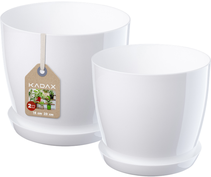 Квітковий горщик з блюдцем Kadax K8162 (2 шт.) — це стильний та універсальний набір, створений для кімнатних рослин, який чудово підходить для драцени, орхідей, фіалок, азалій, кактусів, каланхое, клена та багатьох інших декоративних видів. Горщики найкраще виглядають у добре освітлених приміщеннях, де їхні м’які, ненав’язливі кольори гармонійно поєднуються з інтер’єром і додають йому елегантності. Завдяки великому об’єму кашпо легко розмістити розлогі рослини, а міцна пластикова конструкція забезпечує довговічність, легкість та стійкість до вологи й хімічних речовин. У комплект входять підставки, які збирають зайву воду та захищають поверхні від подряпин і забруднень, що робить догляд за рослинами простим і безпечним. Горщики призначені для використання в приміщенні та чудово виглядають на підлозі, полиці, сходах чи книжковій шафі, а два розміри — 16 × 18 × 14.5 см і 20 × 18 × 16 см — дозволяють створювати гармонійні композиції та підкреслювати красу будь-якої рослини.