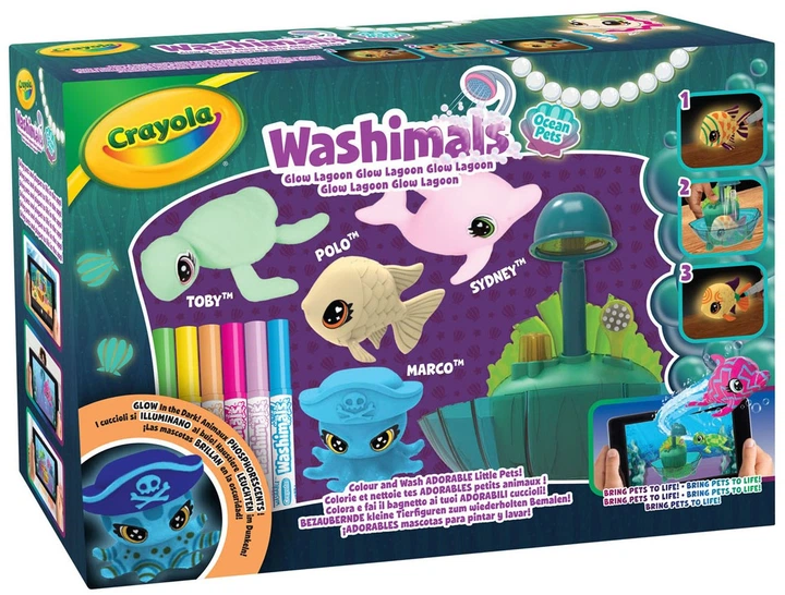 Ігровий набір Crayola Washimals Лагуна Сяйво океану (PRI740218) (71662602185) пропонує години веселого дозвілля. Розфарбуй фігурки та помий їх у ванночці. Тваринки навіть світяться в темряві!