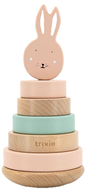 Завдяки чудовому балансу дерева та кольору, ця класична дерев'яна іграшка є абсолютною необхідністю! Хитка дерев'яна основа додає додаткової складності складанню! Цей штабелер покращує координацію рук і очей та стимулює дрібну моторику, поки діти грайливо вчаться розпізнавати різні форми та кольори.