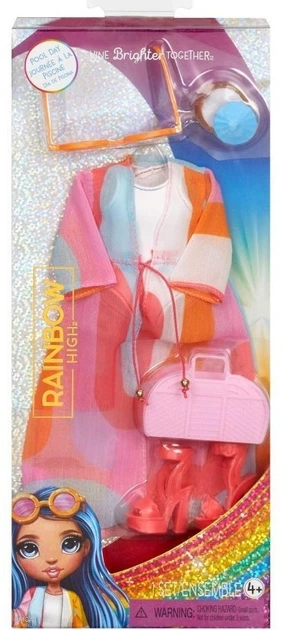 Тематика «Басейн» дарує свіжі кольори та стильні фасони, які чудово доповнюють образи ляльок Rainbow High. Ідеальний вибір для сонячних пригод і творчих історій.
