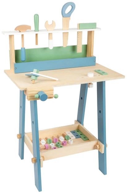Діти вже можуть допомагати зі складанням та демонструвати свої ручні навички. Завдяки скандинавським, приглушеним кольорам цей верстак доповнить будь-який інтер’єр. Підходяща рольова іграшка як для дівчаток, так і для хлопчиків.