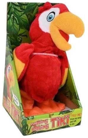 Папуга має висоту приблизно 20 см та виготовлений з м’якої тканини. Він має механізм ходьби та функцію запису та відтворення звуку, яка активується натисканням на крило. Іграшка працює від батарейок та підходить для дітей старше трьох років.