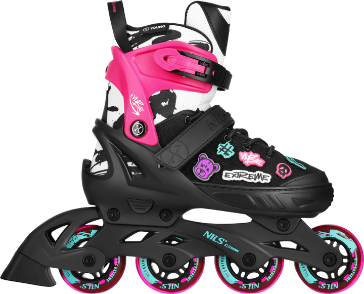 NA2053A VIBE NILS EXTREME w wersji różowej to łyżworolki stworzone z myślą o użytkownikach, którzy chcą połączyć komfort jazdy z możliwością wyrażenia własnego stylu. Delikatna, a jednocześnie wyrazista kolorystyka nadaje modelowi nowoczesny i kreatywny charakter.