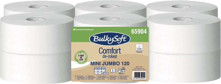 Туалетний папір BulkySoft Comfort Mini Jumbo — це практичне та економічне рішення для щоденного використання в місцях із високою прохідністю. Завдяки великому розміру рулону та оптимальній щільності паперу забезпечується комфорт, міцність і зменшується потреба у частій заміні рулонів.