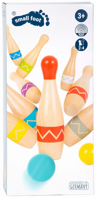 Цей набір для боулінгу підходить як для дітей, так і для дорослих! Дев'ять кеглів з масиву дерева в сучасному дизайні "Active" та дві дерев'яні кулі мають зручний розмір для дітей, і ними можна грати як у приміщенні, так і на вулиці. Це робить цей набір для боулінгу надзвичайно універсальним та заохочує індивідуальну творчість – навіть поза традиційним боулінг-клубом. Сумка для зберігання дозволяє легко зберігати все необхідне та ідеально підходить для подорожей!