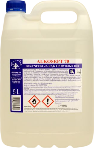 ALKOSEPT 70 — ефективний дезінфікуючий розчин для рук і поверхонь, призначений для професійного та щоденного використання в офісах, школах, дитячих садках, ресторанах, готелях, лікарнях та інших громадських приміщеннях. Містить 70 % етилового спирту, забезпечує бактерицидну, віруліцидну та фунгіцидну дію.