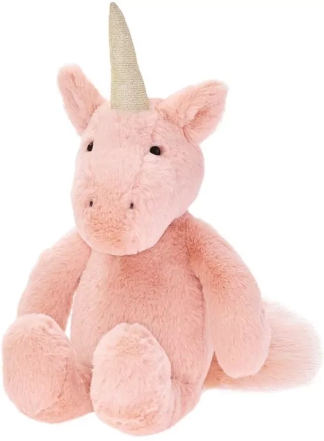 Сидячий єдиноріг Alessio — це чарівна плюшева іграшка у ніжному рожевому відтінку, яка одразу привертає увагу своєю м’якістю та казковим виглядом. Його акуратний золотистий ріг, маленькі чорні оченята та пухнастий хвіст створюють гармонійний і милий образ.