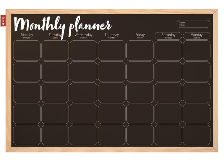 • чорна поверхня з надрукованим білим кольором графіком, що дозволяє планувати місячні завдання