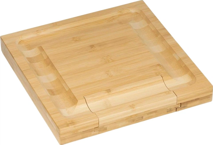 Раціональне розташування дошки дозволяє зручно сервірувати різні сири, закуски та м’ясні делікатеси в одному місці. Шухляда забезпечує комфортне зберігання ножів, а бамбукова поверхня ідеально підходить для нарізки та презентації продуктів, зберігаючи їхню свіжість.