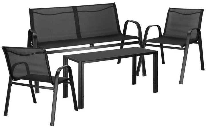 Набір садових меблів Springos GF0106 — це стильний та практичний комплект у чорному кольорі, створений для комфортного відпочинку на терасі, балконі чи в саду. Конструкція виготовлена зі сталі з порошковим покриттям, а сидіння та спинки — із міцного текстилену, що забезпечує довговічність і стійкість до погодних умов. У комплект входять 4 елементи: два крісла, диван та журнальний столик із чорним загартованим склом, закріпленим шістьма присосками. Кожен елемент має продумані розміри для зручного сидіння: крісла та диван оснащені широкими сидіннями, комфортними підлокітниками та спинками висотою 40 см, а висота сидіння становить 42 см. Максимальне навантаження — 120 кг на стілець та 240 кг на диван, що гарантує стабільність і надійність. Журнальний столик розміром 82 × 38.5 × 43 см доповнює комплект, створюючи затишну та функціональну зону відпочинку для сім’ї та гостей.