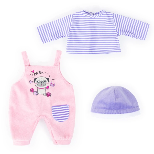 Цей чарівний костюм для ляльки, що складається з трьох частин, виготовлений з увагою до деталей. Весела, послідовна кольорова гама включає комбінезон, топ і шапочку. Костюм красиво оздоблений чарівним мотивом на комбінезоні. Застібка на липучці робить одягання надзвичайно легким для маленьких ручок. Цей наряд для ляльки не тільки дозволяє дітям надати своїй улюбленій ляльці неповторний вигляд, але й у веселій формі розвиває їхню дрібну моторику. Одяг для ляльок підходить для ляльок розміром від 40 до 46 см.
