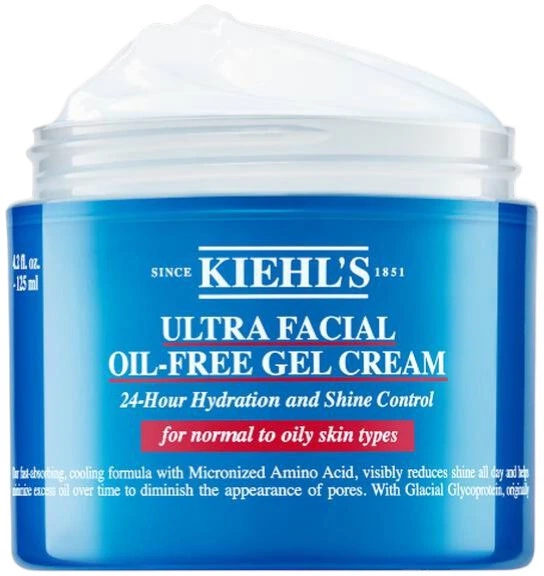 Kiehl's Ultra Facial Oil-Free - безмасляний зволожуючий крем для жирної та нормальної шкіри забезпечує 24-годинне зволоження і має охолоджуючий ефект, який додає енергії, допомагаючи при цьому підтримувати баланс зволоження шкіри, завдяки чому вона залишається матовою, свіжою і виглядає більш здоровою протягом усього дня. Цей крем швидко вбирається, не містить спирту, не викликає комедонів і миттєво проникає в шкіру, допомагаючи з часом помітно зменшити блиск шкіри та мінімізувати пори, завдяки чому шкіра виглядає зволоженою, освіженою та збалансованою. Завдяки унікальній гелевій консистенції цей безмасляний зволожуючий крем охолоджує і зволожує шкіру, не залишаючи слідів