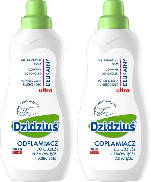 Плямовивідник Dzidziuś ефективно видаляє типові дитячі плями з білих і кольорових тканин, в тому числі: фломастери, кольорові олівці і навіть сажу. Чудово справляється з білковими плямами (плями від йогурту, молока, сухого молока), тому також рекомендований для фарбування білизни годуючих мам. Плямовивідник допомагає видалити плями від овочів і соків (морква, буряк), фруктів (ягоди, сливи, виноград), трави, какао, грязі. Продукт безпечний для дитячої шкіри та тканин. Не містить парабенів, має ніжний аромат і не містить алергенних речовин.