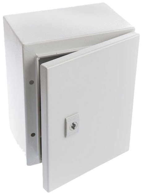 Він виготовлений з міцної листової сталі із сірим (RAL 7035) порошковим покриттям, що забезпечує стійкість до корозії та тривалий термін служби. Корпус оснащений дверцятами, що замикаються, з петлями для легкого встановлення, обслуговування та доступу.