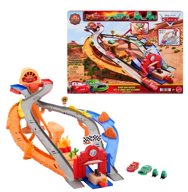 Маттель Disney Cars: Radiator Springs Race & Rescue – Rescue Road Raceway — це захопливий ігровий набір трас і машинок, натхненний серією фільмів Cars. У цій іграшці діти можуть встановлювати улюблені машинки на старт і відтворювати сцени з перегонів або рятувальних місій. Ігровий набір пропонує два режими гри: