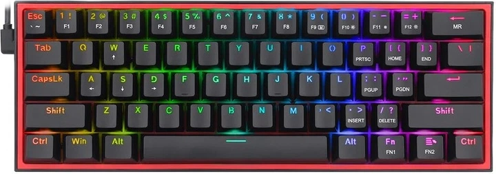 K617-RGB Fizz RGB — це 60% механічна клавіатура, що пропонує 61 механічну клавішу для виняткової чуйності. Додатковою перевагою є функція N-key rollover. Термін служби 50 мільйонів кліків та механічні червоні перемикачі Redragon забезпечують надійність та плавну роботу. Клавіатура також має знімні клавіші.