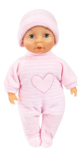Лялька My First Baby створена для ніжних обіймів та турботи. Лялька висотою 28 см має м’яке тіло, тому ідеально підходить для обіймів і затишних ігор. Коли ляльку покласти спати, вона заплющує очі. Завдяки компактному розміру її зручно брати із собою в гості до подруги або до бабусі й дідуся. Лялька одягнена у милий чоловічок із відповідною шапочкою та має ніжну аплікацію у вигляді сердечка.