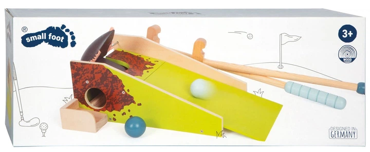 Зіграйте партію міні-гольфу під пильним наглядом веселого крота. Цей повністю дерев’яний набір створений спеціально для дітей та дарує ще більше радості завдяки інтерактивному елементу.