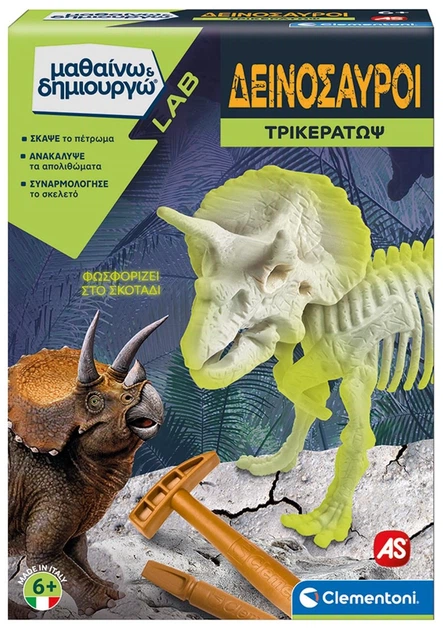 Набір для наукових експериментів AS Clementoni LAB «Вчуся і створюю. Динозаври: Трицератопс» — це захоплива пропозиція для юних дослідників, які цікавляться доісторичним світом і наукою. Завдяки цьому набору дитина може відчути себе справжнім палеонтологом і власноруч відкрити та зібрати модель одного з найвідоміших динозаврів — трицератопса.