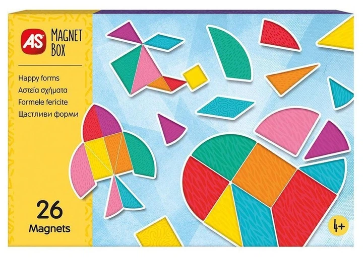 AS Magnet Box Happy Forms — це яскрава та пізнавальна магнітна головоломка, створена для розвитку дитячої уяви й мислення. За допомогою магнітних елементів дитина може складати веселі форми та фігурки, розвиваючи логіку, креативність і дрібну моторику.