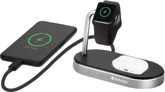 Бездротова зарядна підставка Verbatim WCS-02 3 in 1 Apple Watch iPhone Black-Silver (23942495567)