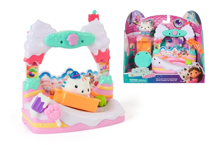Відчуйте магію фільму «Кіт Габі з солодким балконом». Цей чарівний набір для гри з фігуркою Ласуна та численними аксесуарами зачарує юних шанувальників під час відкриття Котячого будиночка. Балкон можна прикріпити до будь-якого будиночка для ляльок Габбі, забезпечуючи нескінченні можливості для гри та творчих пригод завдяки серії чудових розвиваючих іграшок.