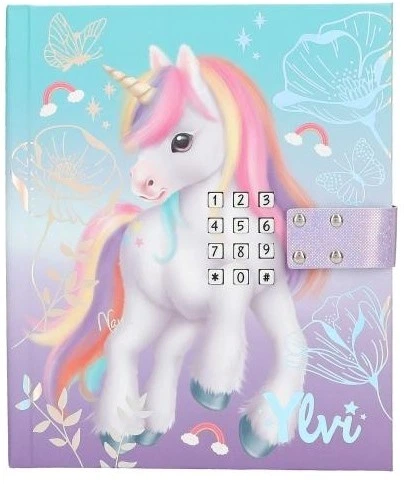 Щоденник Єдиноріг Ілві з кодом для ваших найпотаємніших нотаток. Після відкриття коротко грає чарівна мелодія, а кілька елементів на обкладинці підсвічуються. Всередині знаходиться польський посібник та змінні батарейки.