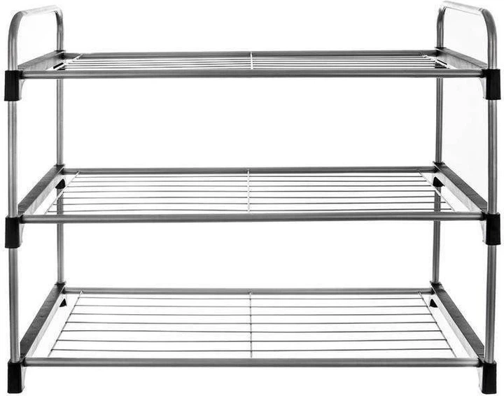- Odpowiedni rozmiar – Regał posiada trzy poziomy, które pozwolą nam odpowiednio przechowywać buty. Jego niewielkie rozmiary sprawiają, że zmieści się nawet w mniejszych przestrzeniach.