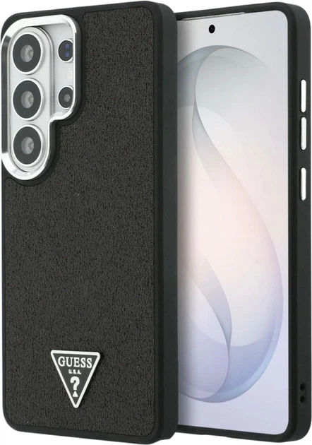 Ексклюзивний захисний чохол від відомого бренду Guess — це поєднання елегантності та стилю на найвищому рівні. Поверхню чохла покрито елегантною екошкірою, прикрашеною характерним візерунком Triangle. Рамка камери та кнопки оздоблені золотим кольором, що надає всьому виробу розкішного характеру.