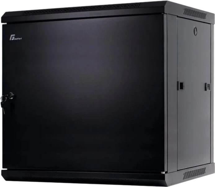 Ця настінна 19‑дюймова шафа серії GetFort створена для розміщення телекомунікаційного та мережевого обладнання в приміщеннях, де важлива компактність без втрати функціональності. Вона поєднує практичну конструкцію з продуманою організацією внутрішнього простору, що дозволяє зручно розміщувати обладнання різного типу — від комутаторів і серверів до пристроїв відеоспостереження.