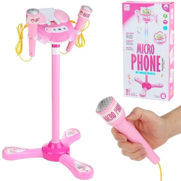 Zestaw karaoke dla dzieci Micro Phone – mikrofon ze statywem i efektami świetlnymi