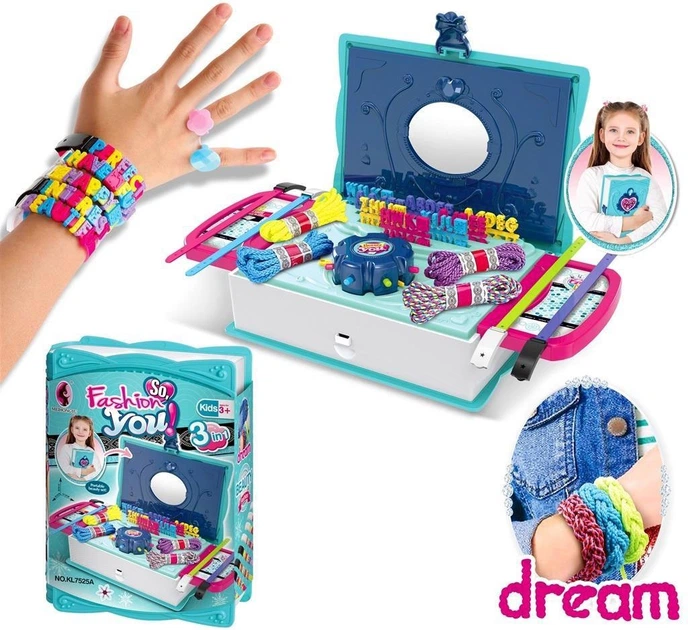 Набір для плетіння браслетів у скриньці – чудова пропозиція для юних любителів рукоділля та біжутерії. Завдяки цьому набору дитина може самостійно створювати кольорові браслети, розвиваючи уяву, креативність та ручні навички.