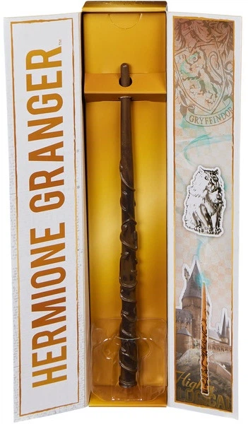 Ця репліка чарівної палички Герміони Ґрейнджер має обважнену ручку, завдяки чому стрижень довжиною приблизно 30.5 сантиметра легко тримати в руці. Паличка має золоту металеву мерехтливу ручку в стилі Гоґвортсу. Крім того, кіт Герміони, Крумбайн, служить символом кастингу. Чудовий аксесуар для рольових ігор про Гаррі Поттера та магічних дуелей!