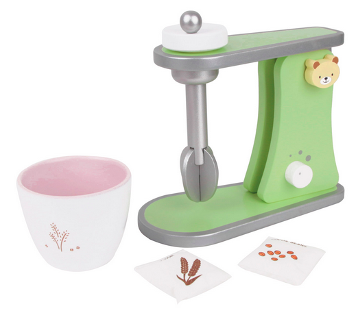 Іграшка виготовлена з натуральної деревини та пофарбована безпечними фарбами. Реалістичний дизайн із чашею та аксесуарами робить гру цікавою та захопливою. Дитина може обертати міксер і змішувати уявні інгредієнти, що розвиває уяву, дрібну моторику та координацію рухів.