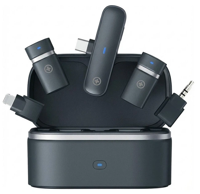 Пристрій пропонує широку сумісність завдяки різним типам роз'ємів, таким як USB-C, Lightning та 3,5 мм джек. Це дозволяє легко підключити набір до смартфонів, планшетів, DSLR-камер, комп'ютерів та інших записуючих пристроїв.