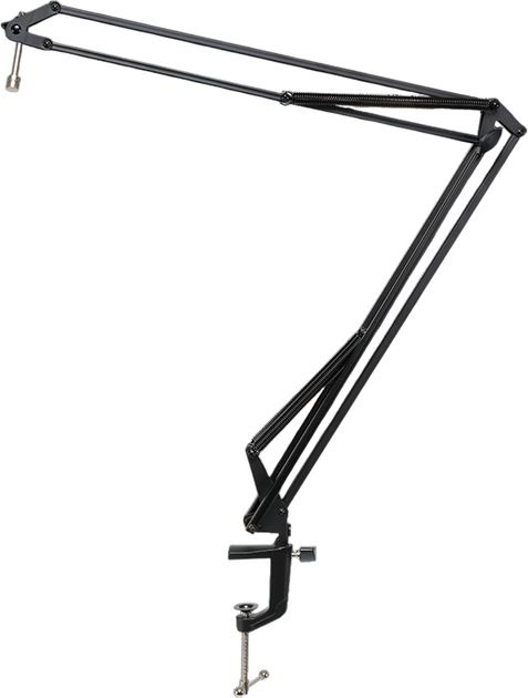 Міцна сталева конструкція забезпечує стабільність і довговічність, а система пружинного регулювання дозволяє легко налаштувати положення кронштейна відповідно до поточних потреб. Стійка кріпиться до стільниці за допомогою настільного затискача, що дозволяє швидко встановити її без необхідності свердління.