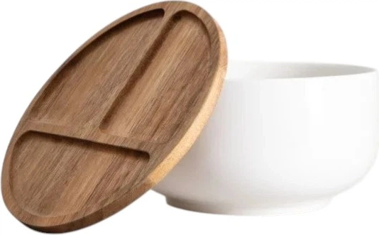 Миска Homla Mooka з акацієвою кришкою 24×13.5 см — елегантна та функціональна миска, яка стане ідеальним рішенням для зберігання та подачі продуктів. Високоякісна кераміка забезпечує довговічність і стійкість до подряпин, а натуральна кришка з акації додає тепла та натурального стилю в інтер’єр кухні.