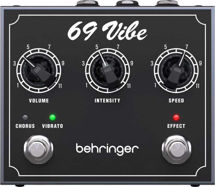 Behringer 69 VIBE — ідеальне рішення для кожного гітариста, який хоче досягти культового звучання 60-х і 70-х років у сучасному виконанні. Завдяки широким можливостям регулювання та міцній конструкції, це незамінний елемент кожного педалборду.