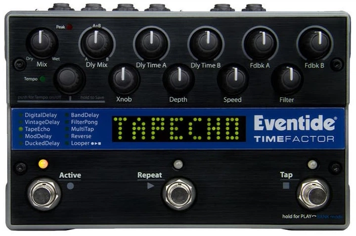 Педаль ефектів Eventide TimeFactor — це професійний подвійний дилей студійної якості, який поєднує два незалежні канали затримки, 9 алгоритмів ефектів та повноцінний лупер для творчої роботи наживо та в студії. Кожен тип затримки має окремі регулятори Mix, Time і Feedback для доріжок A та B, а також додаткові можливості модуляції, фільтрації та керування через X‑knob. TimeFactor працює в моно або стерео режимах, підтримує MIDI, tap‑tempo, експресійну педаль і пропонує 100 пресетів для швидкого доступу до потрібного звучання. У педалі реалізовано ефекти Digital, Vintage, Tape Echo, Mod, Ducked, Reverse, MultiTap, AutoPan та Range Delay, а також лупер зі змінною швидкістю та редагуванням. Міцний металевий корпус, справжній аналоговий байпас, гнучкі варіанти підключення та живлення 9V роблять TimeFactor надійним інструментом для гітаристів, клавішників і саунд‑дизайнерів, які потребують широких можливостей затримки та повного контролю над звучанням.
