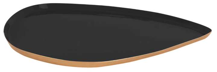 Піднос виготовлений з міцного металу, стійкого до пошкоджень і легкого в догляді, що забезпечує його тривале використання. Сучасна форма, натхненна формою краплі, та стримана кольорова гама роблять цей виріб ідеальним доповненням до різних інтер'єрів, від сучасних до класичних.