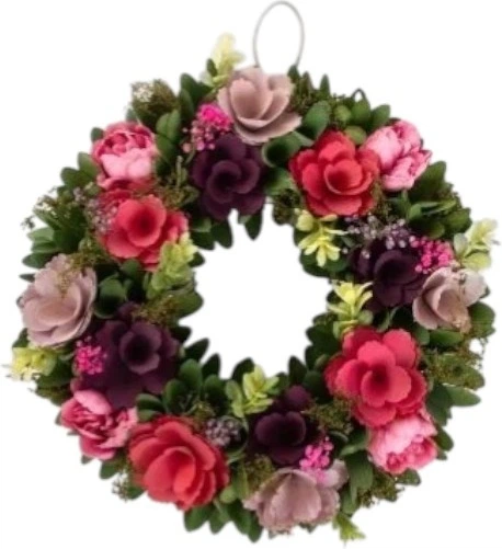 Додайте інтер’єру весняної свіжості та яскравих барв разом із декоративним вінком Lorie. Багата квіткова композиція у відтінках рожевого, фіолетового та зеленого виглядає дуже ефектно та створює атмосферу весни у будь-якому приміщенні. Зелені акценти підкреслюють природний характер декору та додають йому легкості.