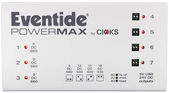 Живить кілька педалей Eventide, Strymon та інших високострумових