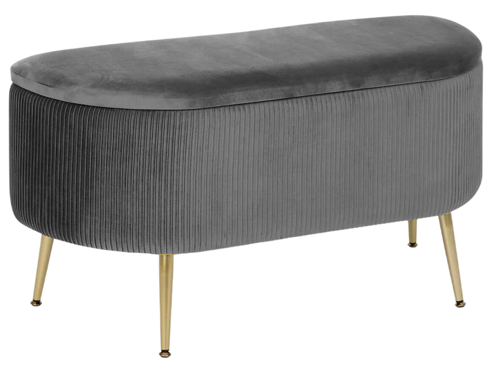 - Елегантний дизайн: Сидіння для передпокою SOLARO вирізняється сучасною округлою формою та велюровою оббивкою сірого або бежевого кольору, яка додає інтер’єру елегантності.