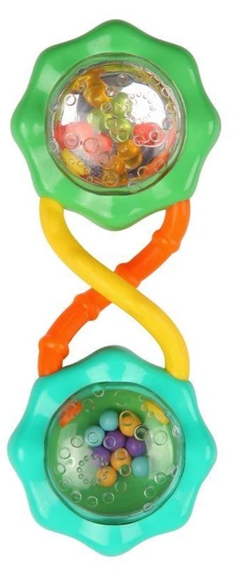 Ергономічна форма, що нагадує маленьку гантель, робить брязкальце зручним для маленьких ручок. Легка конструкція дозволяє дитині вільно маніпулювати іграшкою, що сприяє розвитку координації рук і очей та моторики.